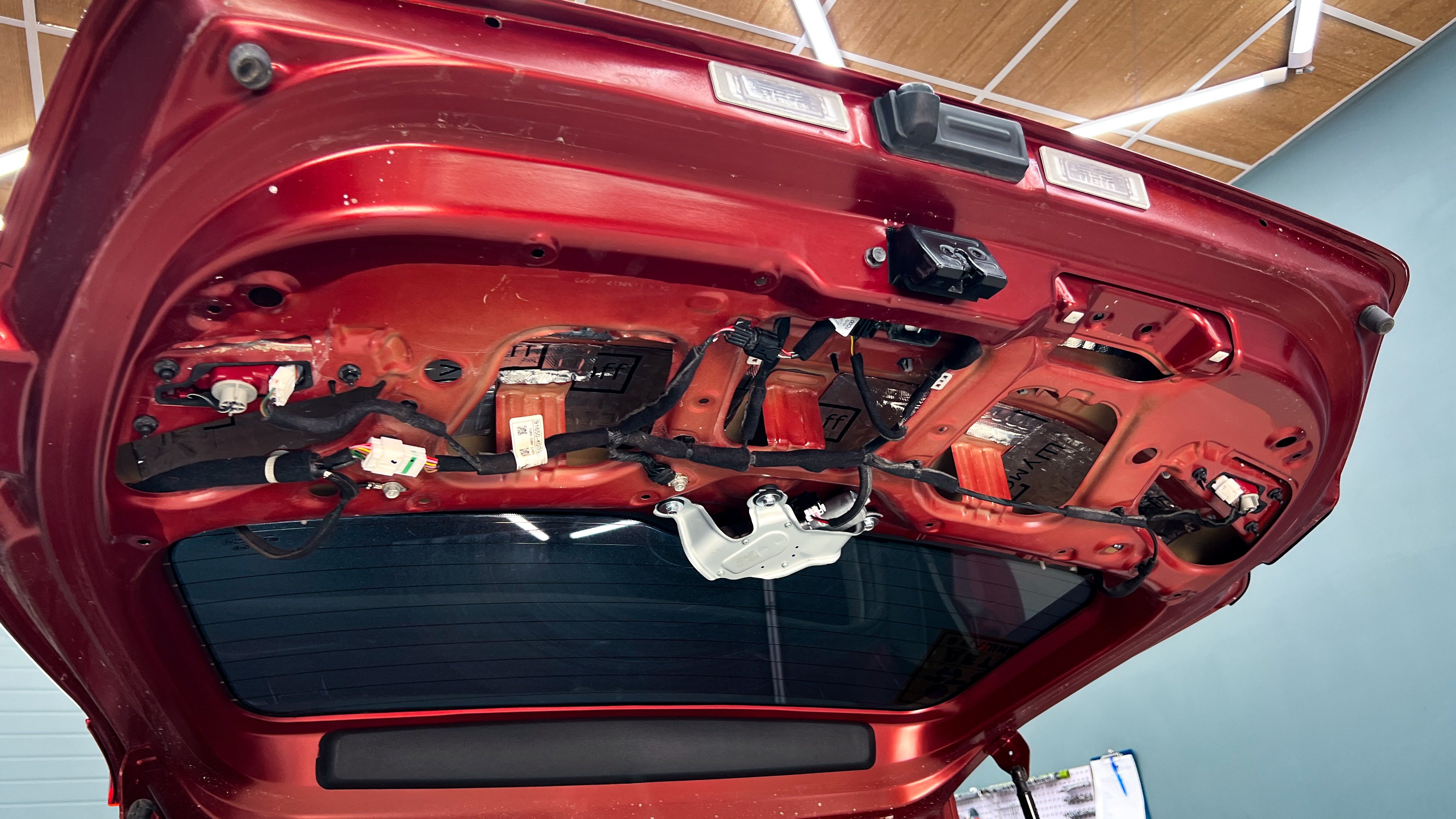 Обшивку пятой двери оклеиваем Flex А15, для устранения ненужных скрипов и бряков.