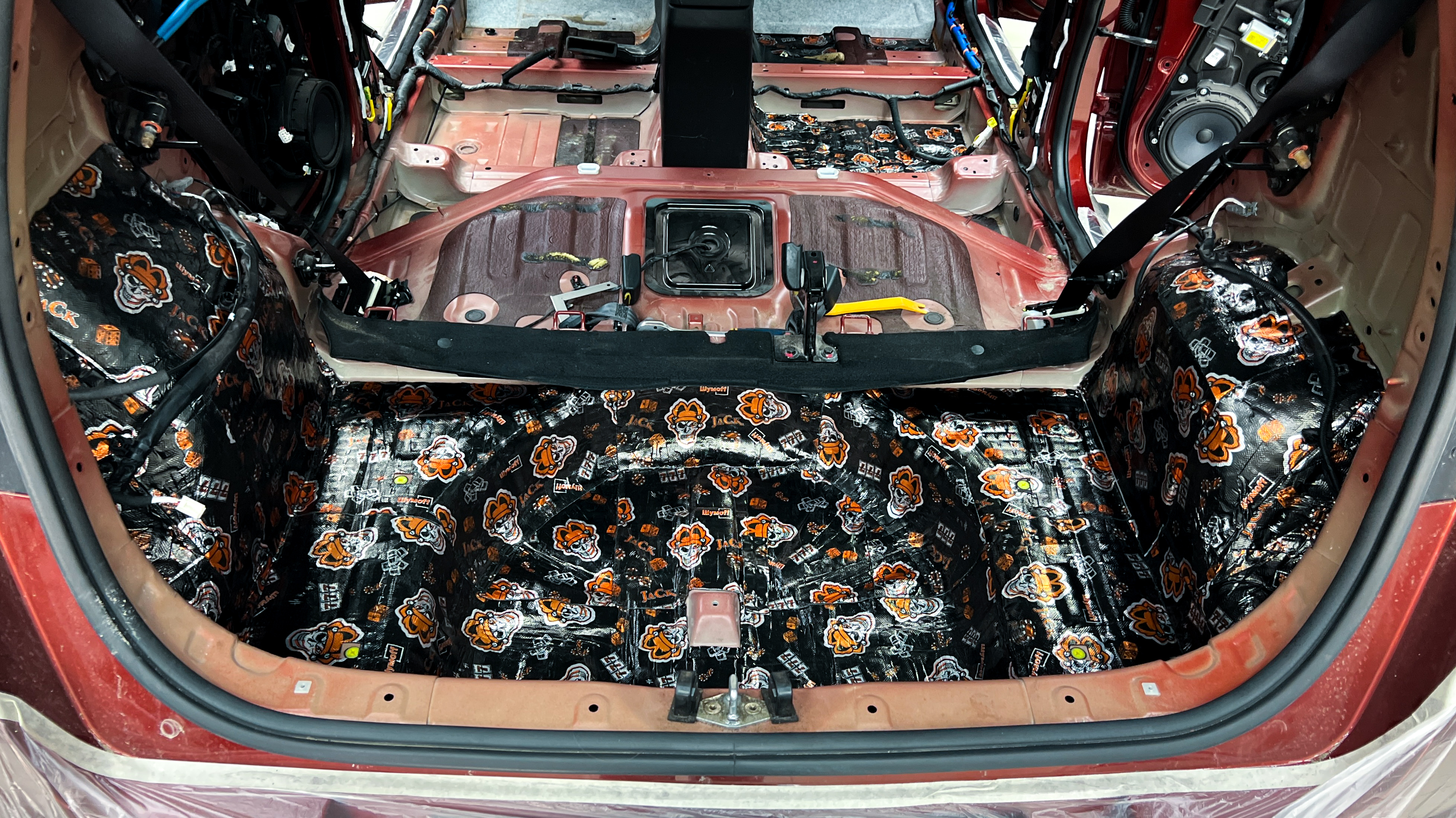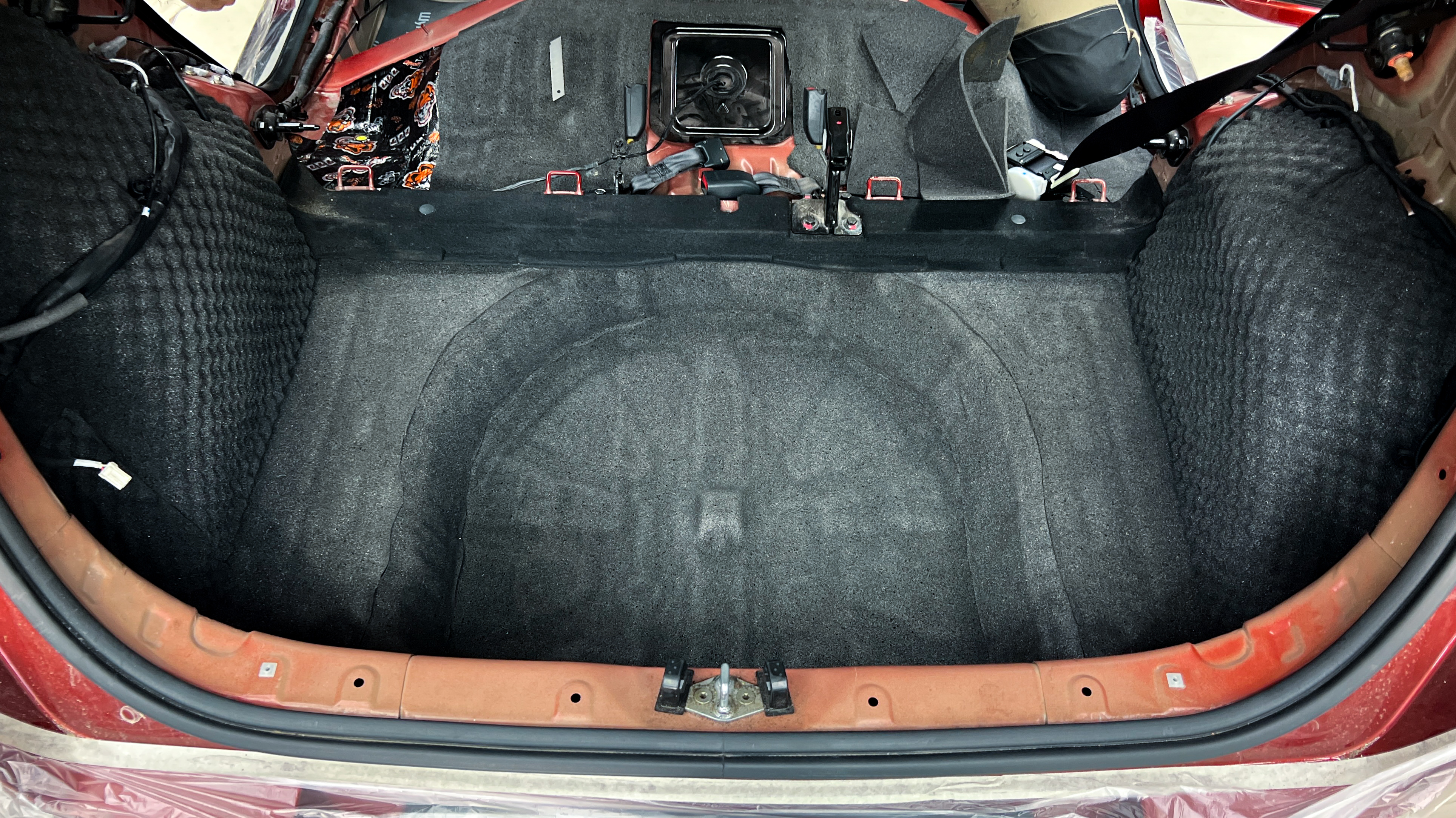 Штатная шумоизоляция багажника практически отсутствует, при