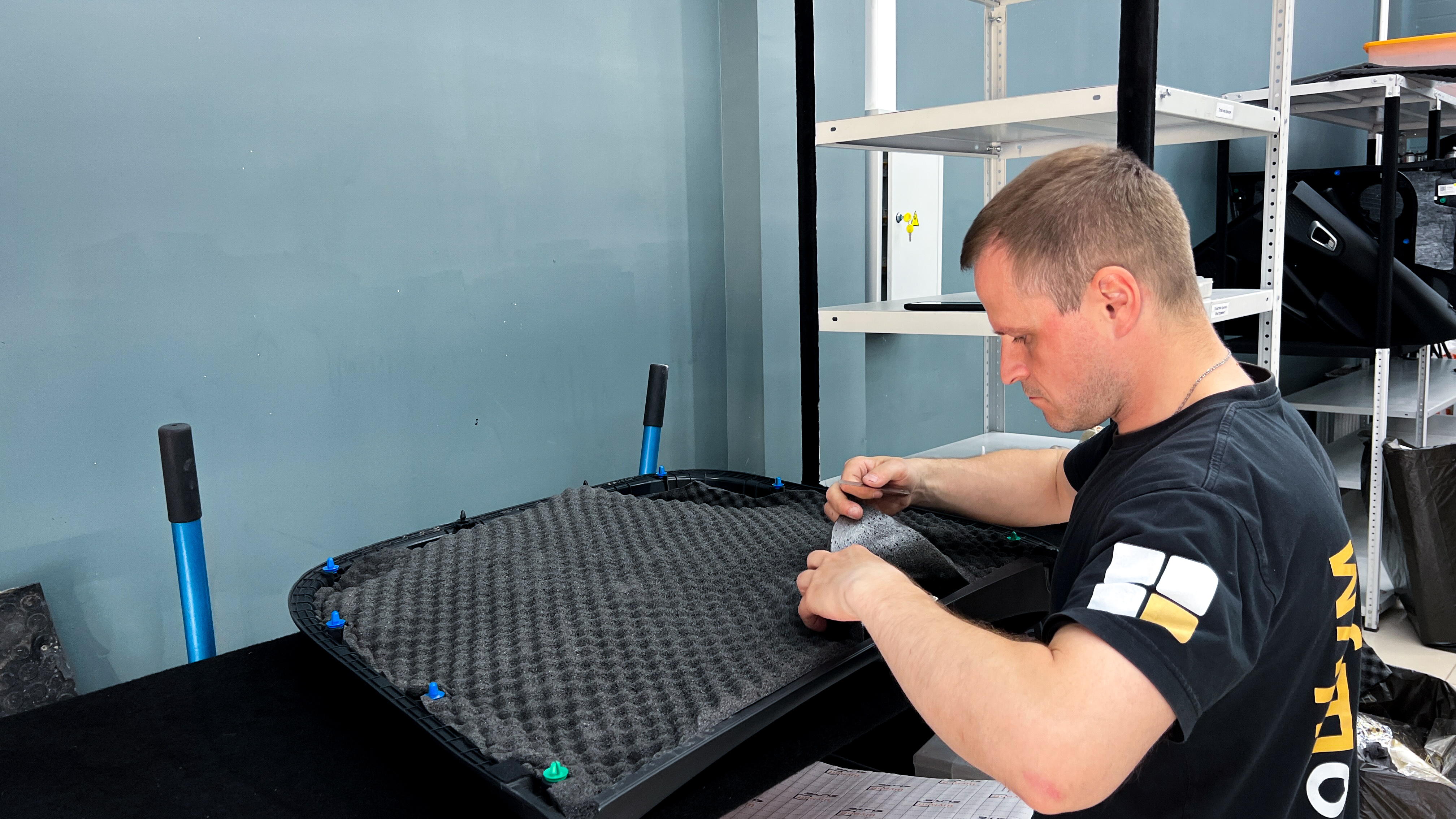 Вторым слоем поверх M4 клеим шумопоглотитель с черным влагозащитным покрытием Шумофф Герметон 7Л.