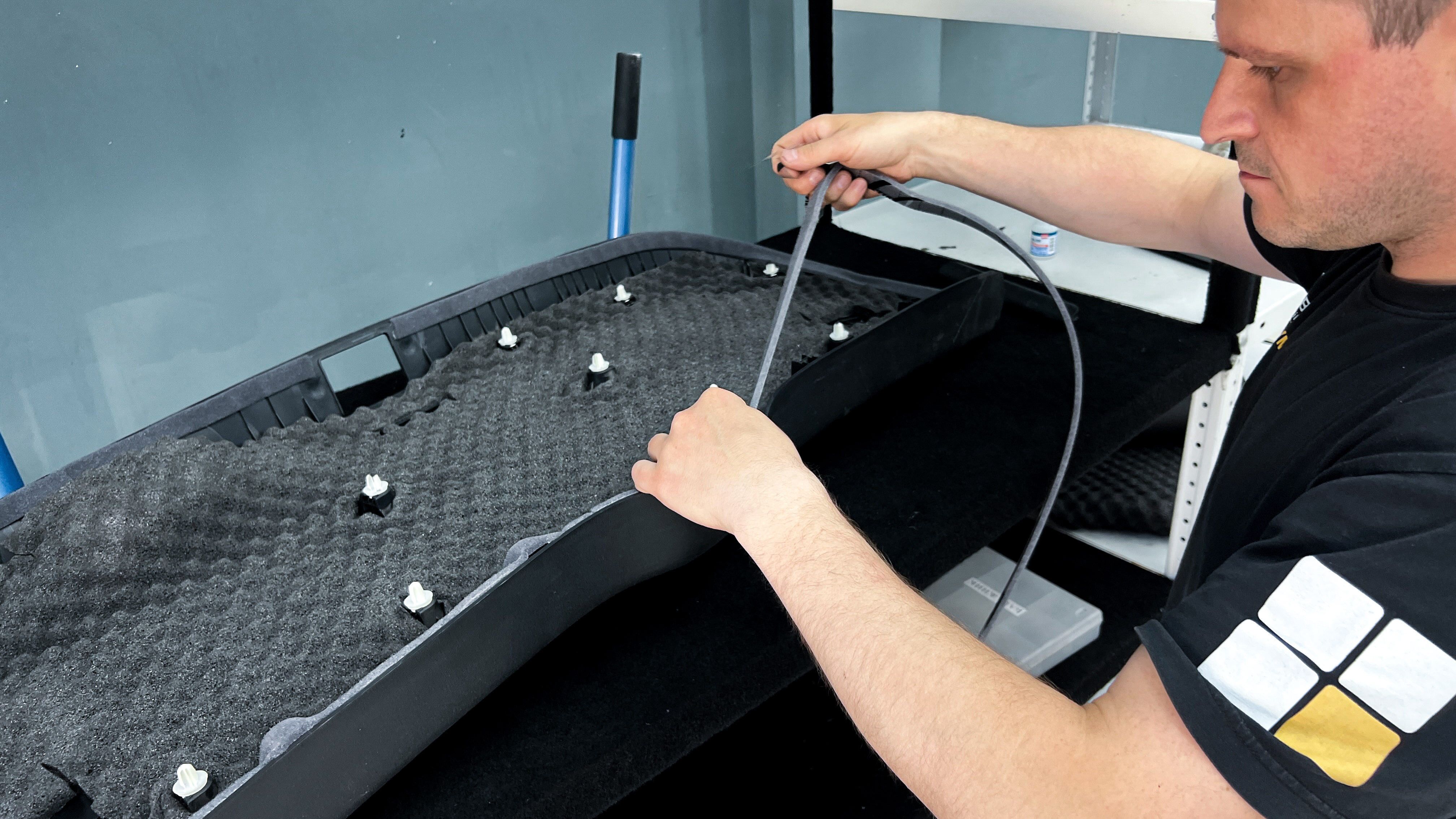Для виброизоляции крыши багажника используем материал Шумофф L2, чтобы свести увеличение веса к минимуму. После чего переходим к обшивке.